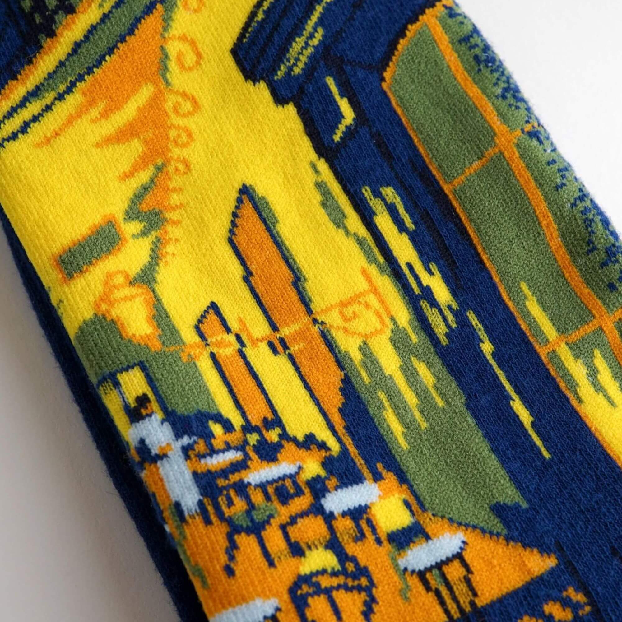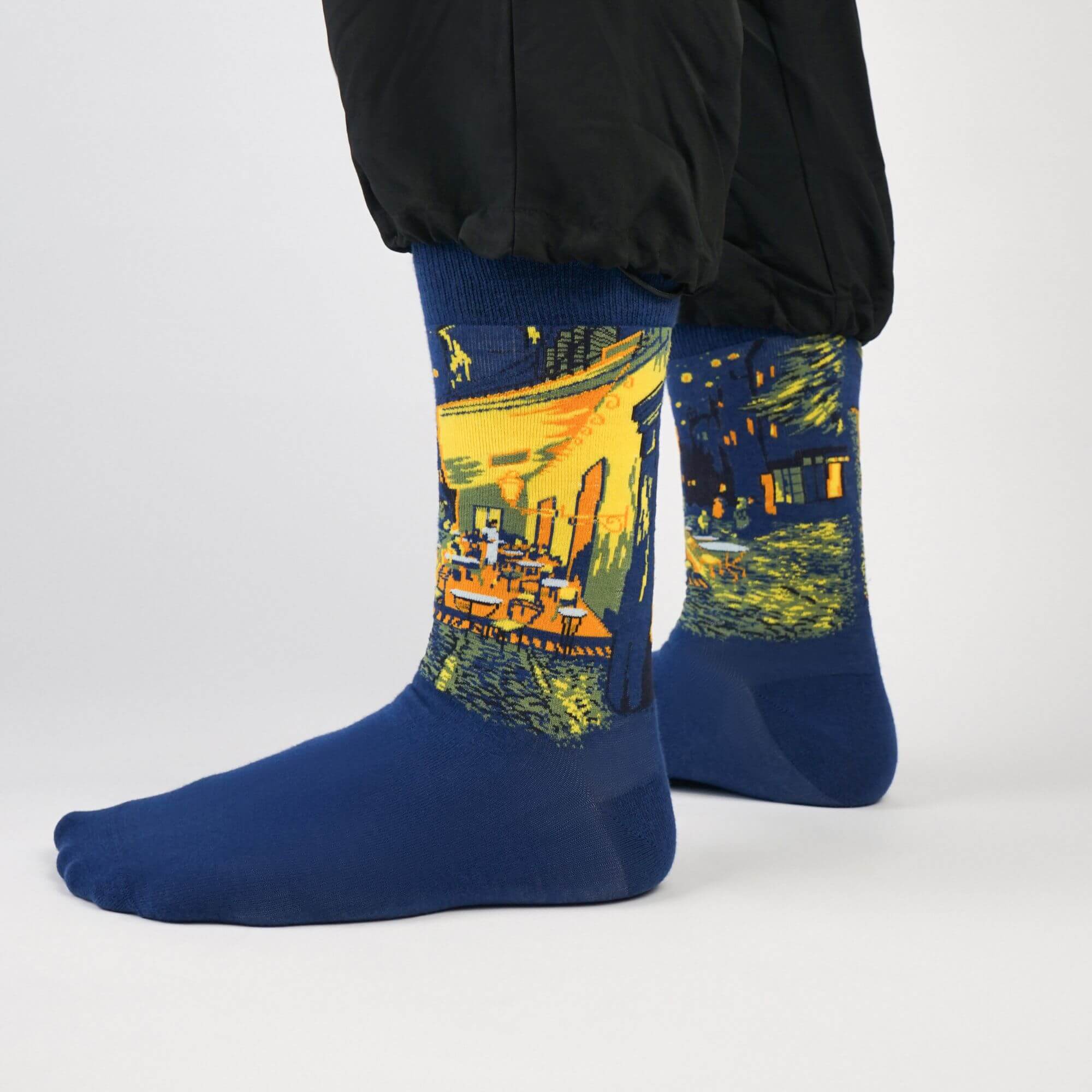 De kunstwerken op onze sokken zijn niet geprint, maar echt ingeweven – iets wat veel mensen verrast. Omdat de kleuren in de stof zijn verweven, blijven ze was na was helder en levendig. Zelfs na tientallen keren dragen zien je sokken er nog steeds stralend uit, alsof ze net uit de verpakking komen. Zo geniet je extra lang van kunst aan je voeten!