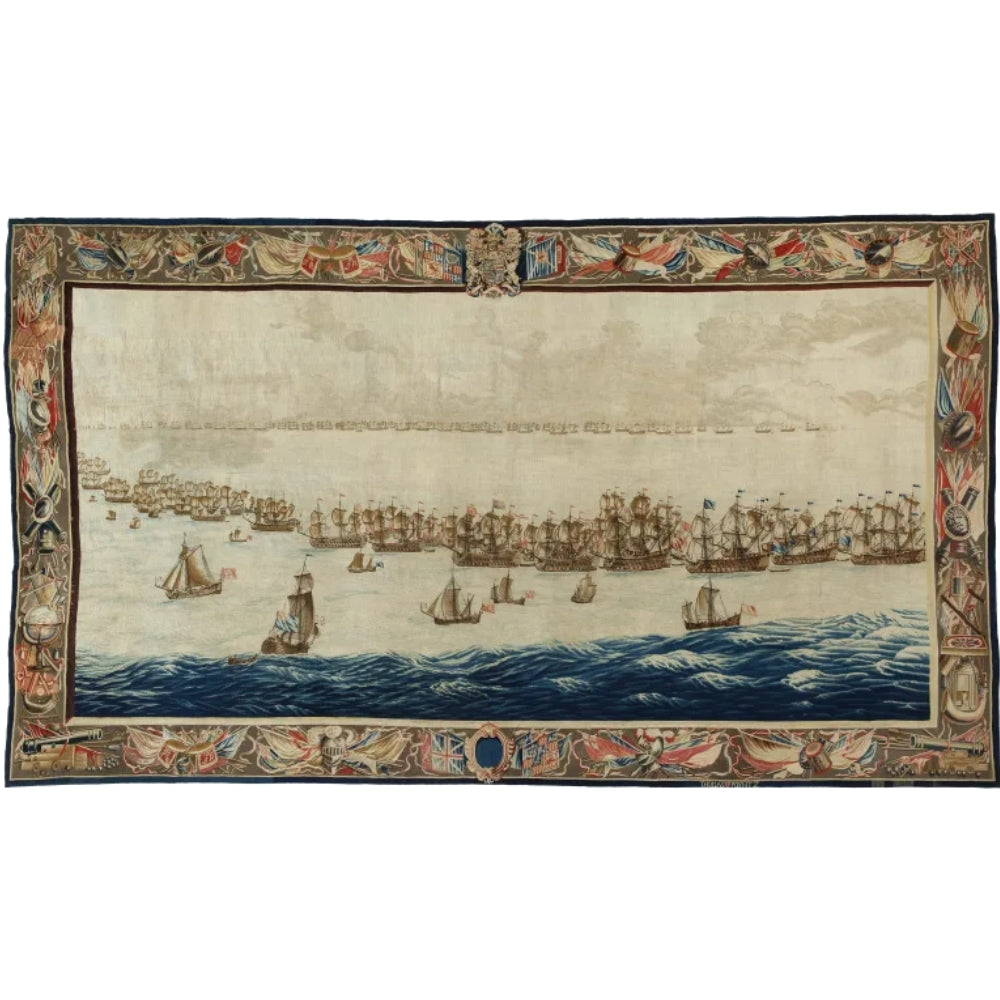 Het Scheepvaartmuseum verwierf recent deze zeldzame tapijten – de grootste aankoop in hun geschiedenis. Het originele kunstwerk meet 6 bij 3,3 meter en is een meesterwerk van 17e-eeuws vakmanschap. Wij vertaalden dit monumentale werk naar draagbare kunst, zodat jij dagelijks een stukje Nederlandse zeevaargeschiedenis kunt ervaren.