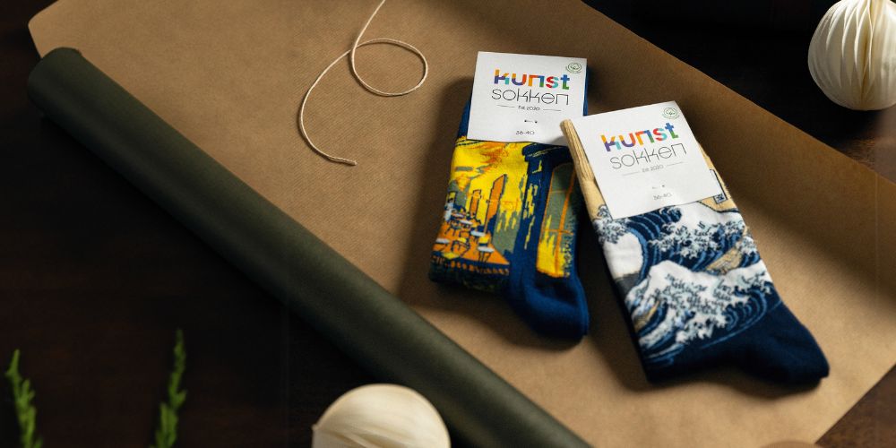 De Grote Golf van Kanagawa sokken geïnspireerd op Hokusai's iconische kunstwerk, gemaakt van biologisch katoen.De Grote Golf van Kanagawa