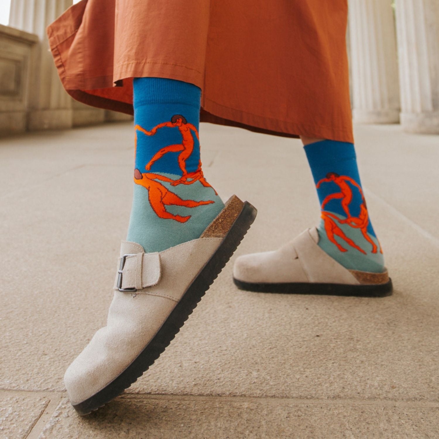 Onze sokken zijn gemaakt met hoogwaardig biologisch katoen: niet alleen zacht voor je huid, maar ook vriendelijk voor de planeet. Ze beloven een lange levensduur en blijven was na was prachtig, voor duurzame kunst aan je voeten.