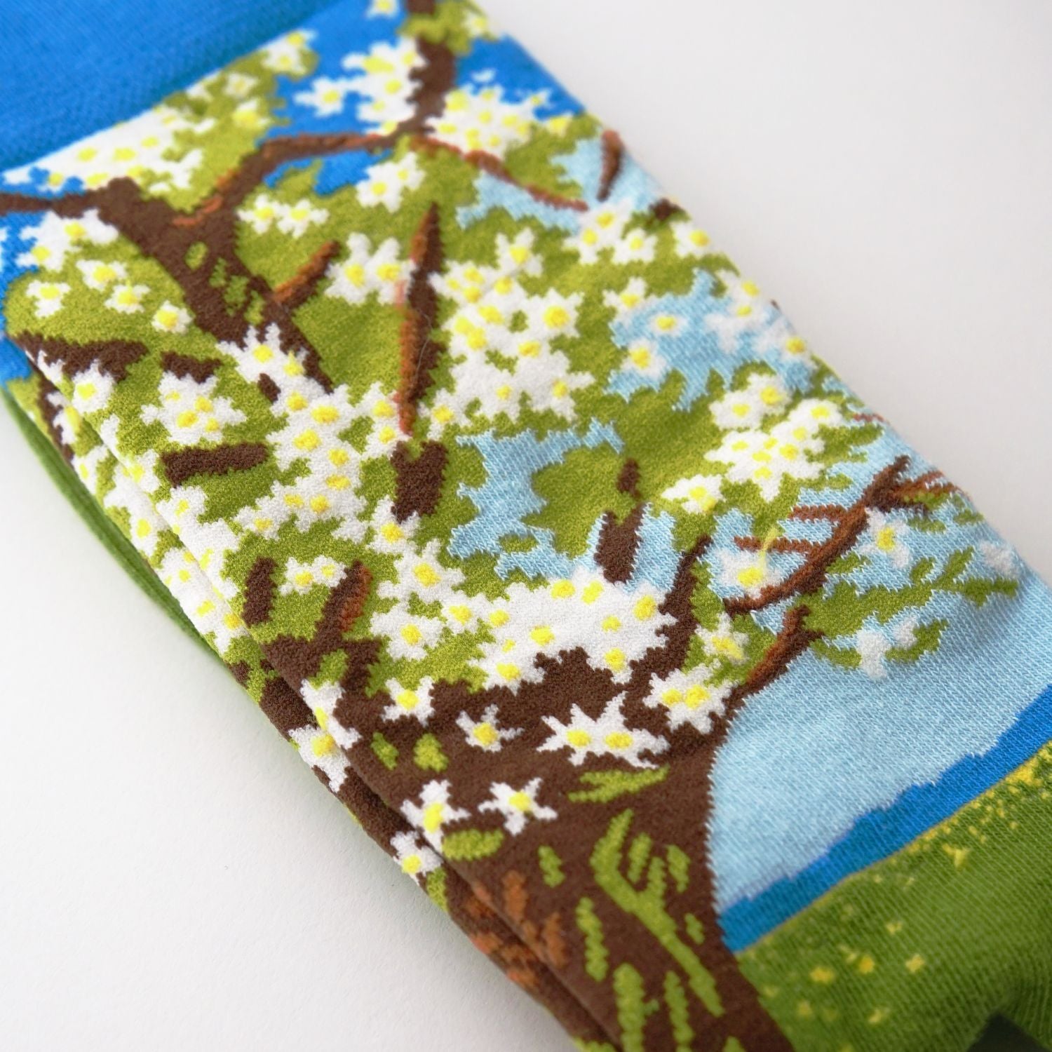De kunstwerken op onze sokken zijn niet geprint, maar echt ingeweven – iets wat veel mensen verrast. Omdat de kleuren in de stof zijn verweven, blijven ze was na was helder en levendig. Zelfs na tientallen keren dragen zien je sokken er nog steeds stralend uit, alsof ze net uit de verpakking komen. Zo geniet je extra lang van kunst aan je voeten!