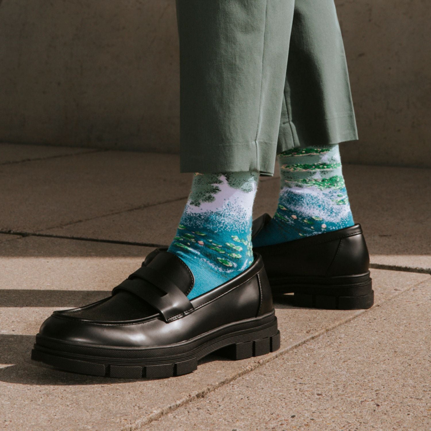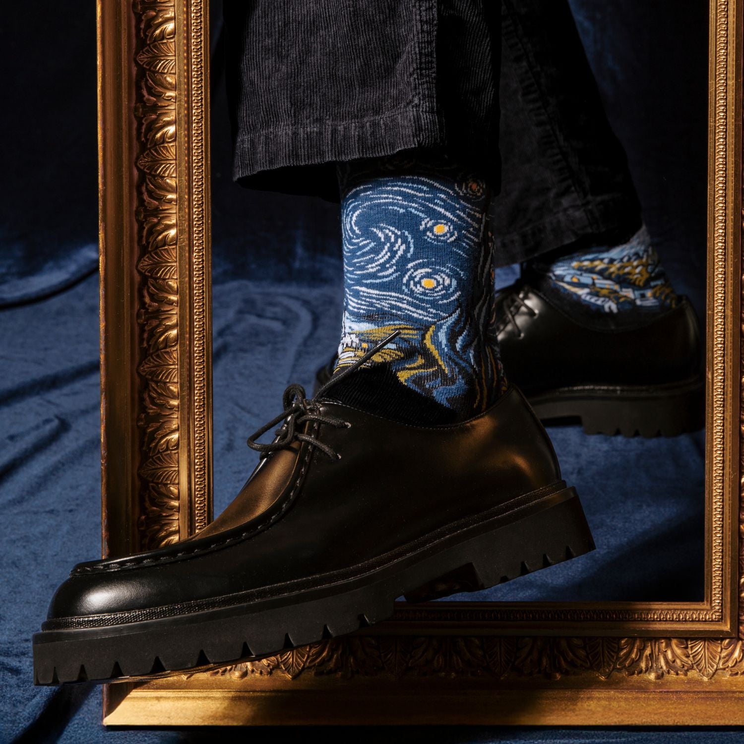 Onze sokken zijn gemaakt met hoogwaardig biologisch katoen: niet alleen zacht voor je huid, maar ook vriendelijk voor de planeet. Ze beloven een lange levensduur en blijven was na was prachtig, voor duurzame kunst aan je voeten.