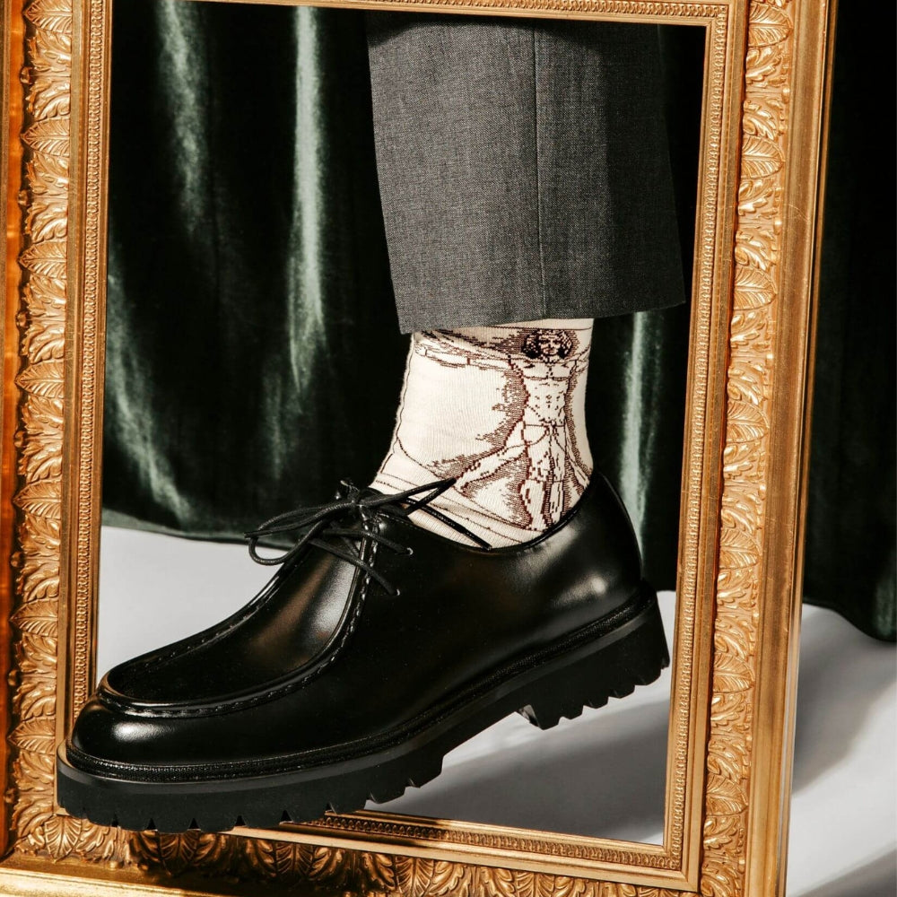 Onze sokken zijn gemaakt met hoogwaardig biologisch katoen: niet alleen zacht voor je huid, maar ook vriendelijk voor de planeet. Ze beloven een lange levensduur en blijven was na was prachtig, voor duurzame kunst aan je voeten.