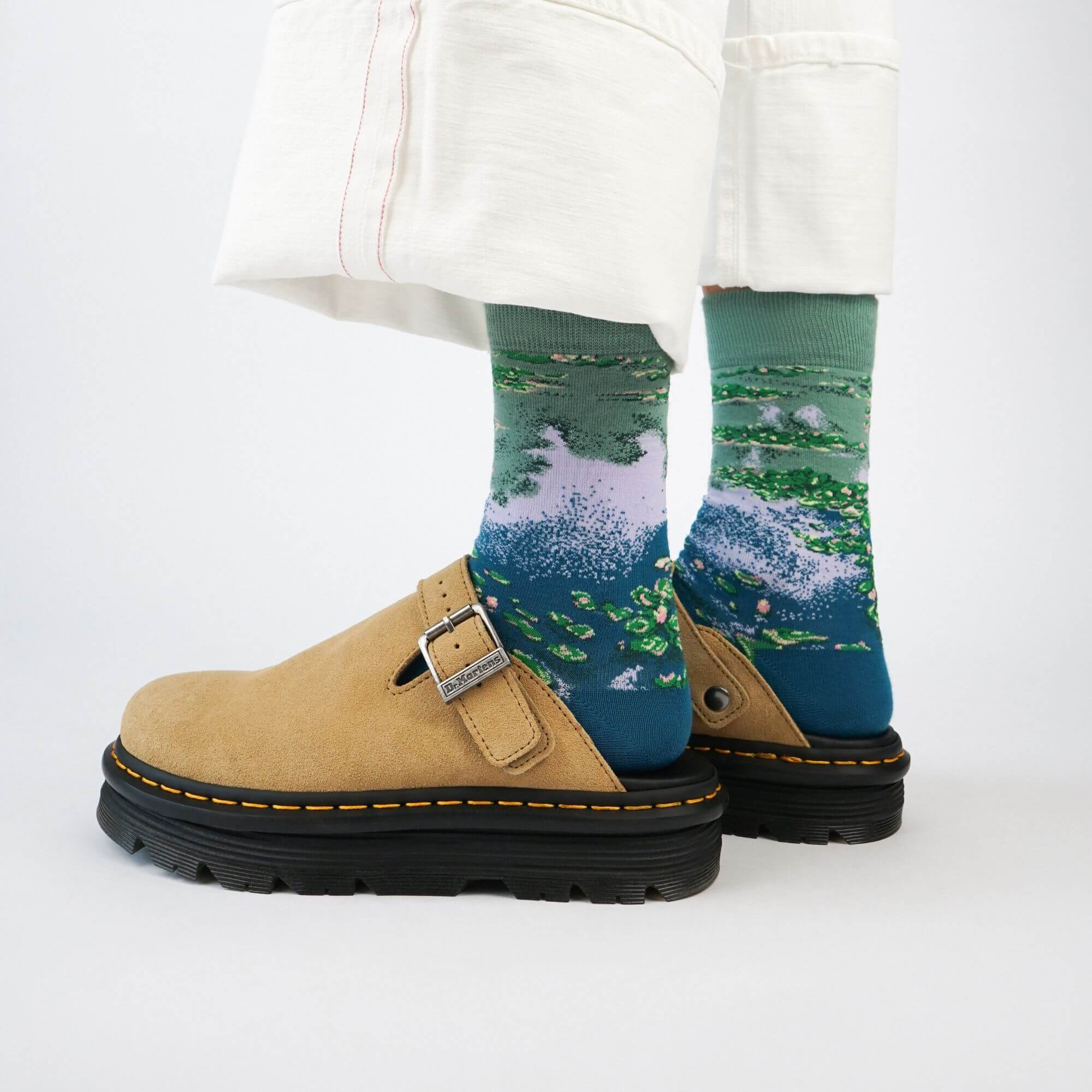 Onze sokken zijn gemaakt met hoogwaardig biologisch katoen: niet alleen zacht voor je huid, maar ook vriendelijk voor de planeet. Ze beloven een lange levensduur en blijven was na was prachtig, voor duurzame kunst aan je voeten.